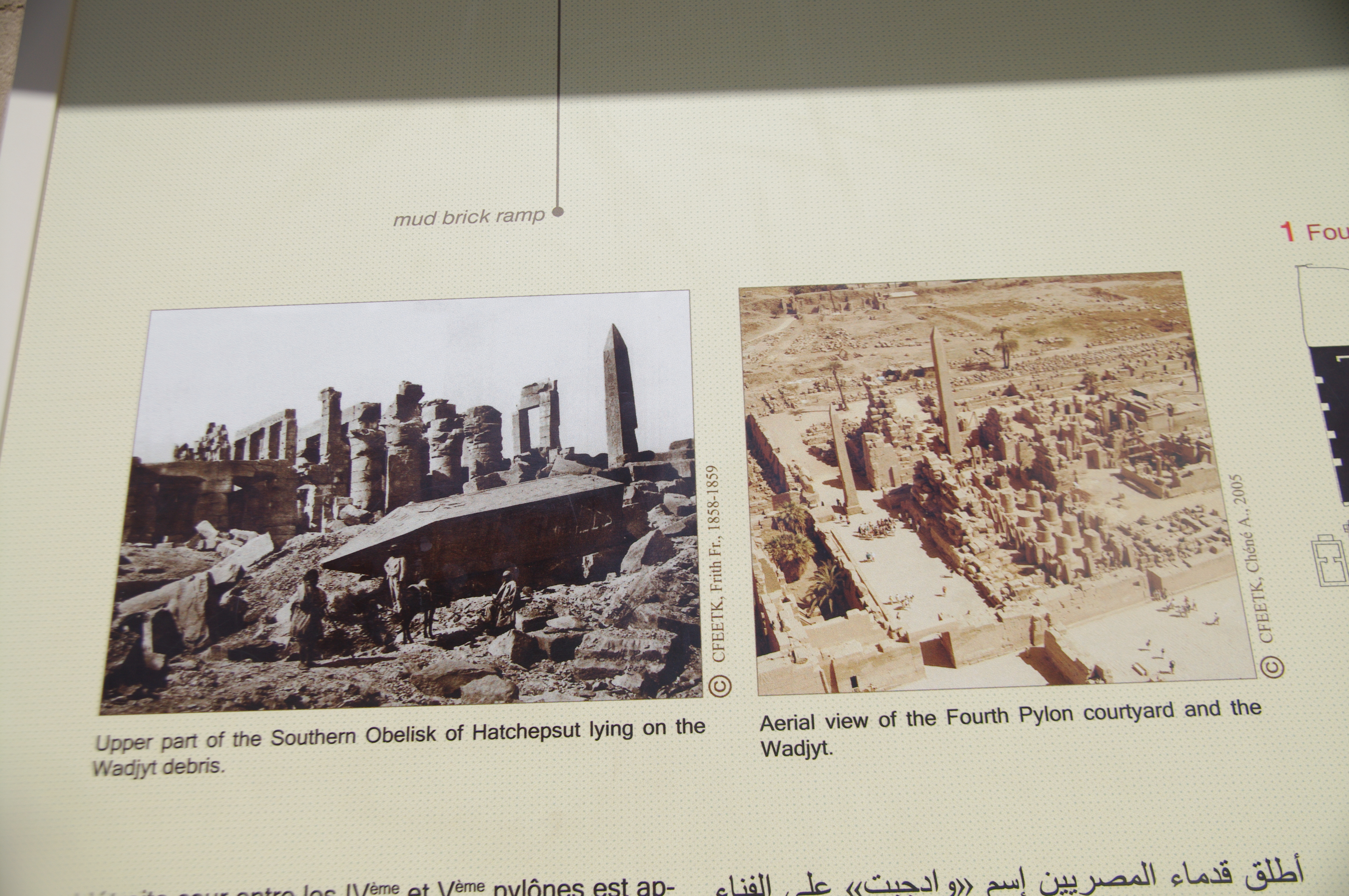 10개의 탑문, 제19왕조의 창시자 람세스 1세로부터 3대에 걸쳐 건설된 대열주실, 제18왕조의 투트모세 1세와 그의 딸로 여왕이 된 하트셉수트가 세운 오벨리스크, 투트모세 3세 신전, 람세스 3세 신전 등으로 구성되어 있다.