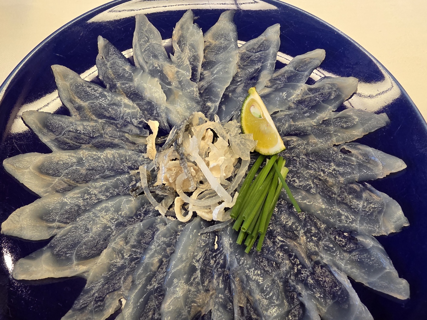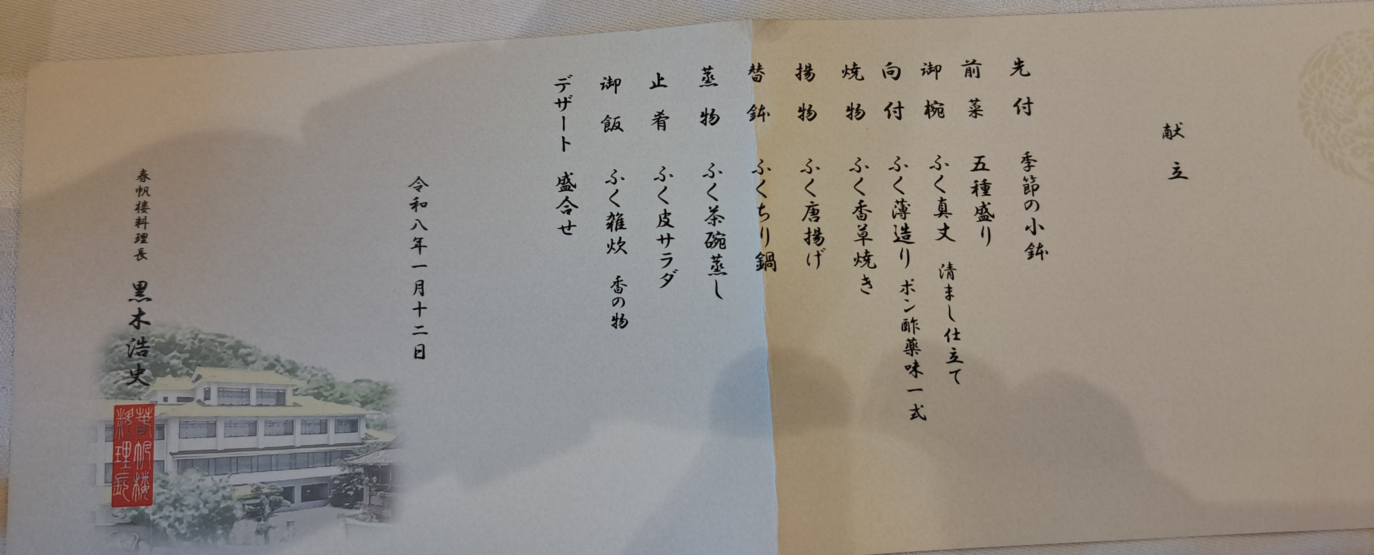 슌판루의 복 사시미 코스는 매우 고급진 요리였다. 1인 10,000엔