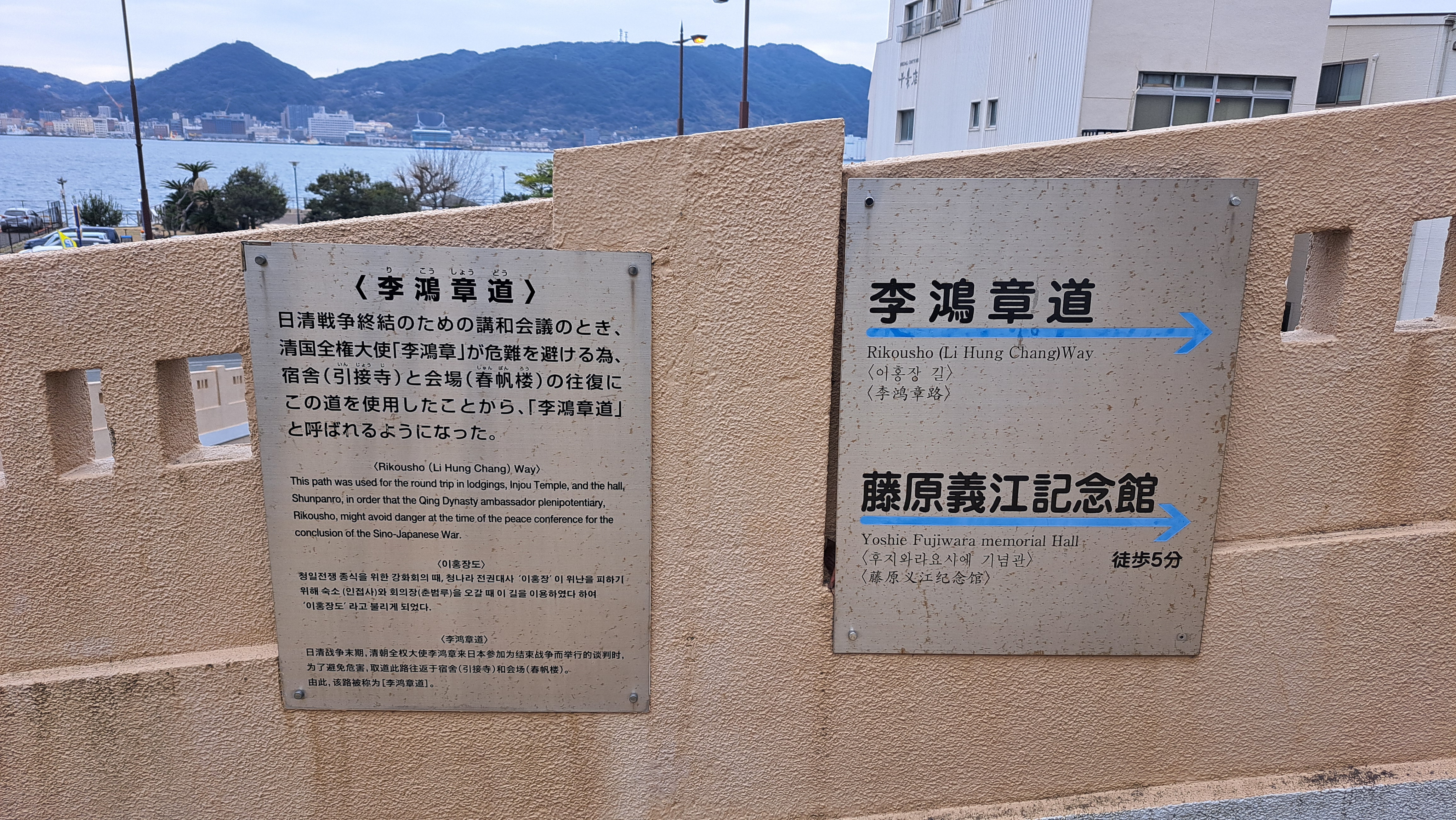 이 곳은 청일전쟁 후 이토 히로부미가 청나라 북양대산 리홍장과 배상조약을 한 역사적 현장이다.