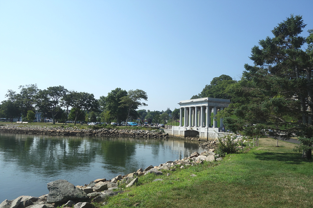 그 때 밟고 올랐던 바위라 해서 1620이 새겨진 폴리머스락(Plymouth Rock)을 마치 그리스 신전 풍 건물에 보존하고 있다.